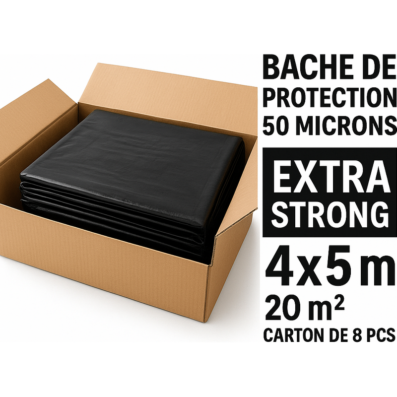 Bâches protection sol et mobilier EXTRA STRONG 4x5m soit 20 m² (carton de 8 pcs)
